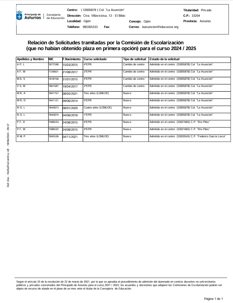 Listado de ADMISIONES REUBICADAS en nuevos Centros